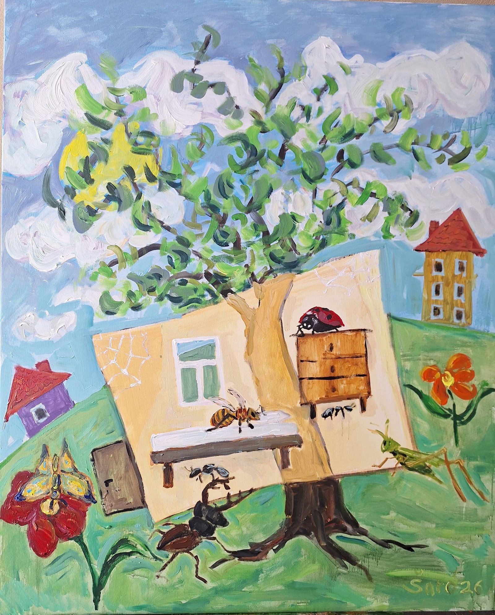 Pasauliukai "Vabalai šen" , drobė, akrilas, 110x90cm, 2026m.